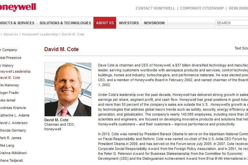 In der Riege der weltweiten Top-Verdiener findet sich auch David M. Cote – der Chef des US-Mischkonzerns hat es mit einer Gage von 27,2 Millionen Euro auf Platz 19 geschafft.