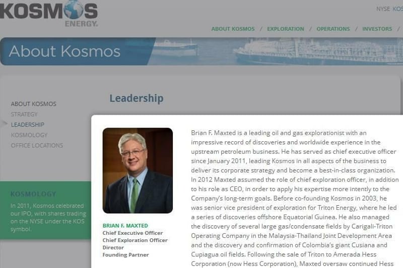(Quelle: Screenshot Homepage Kosmos Energy)