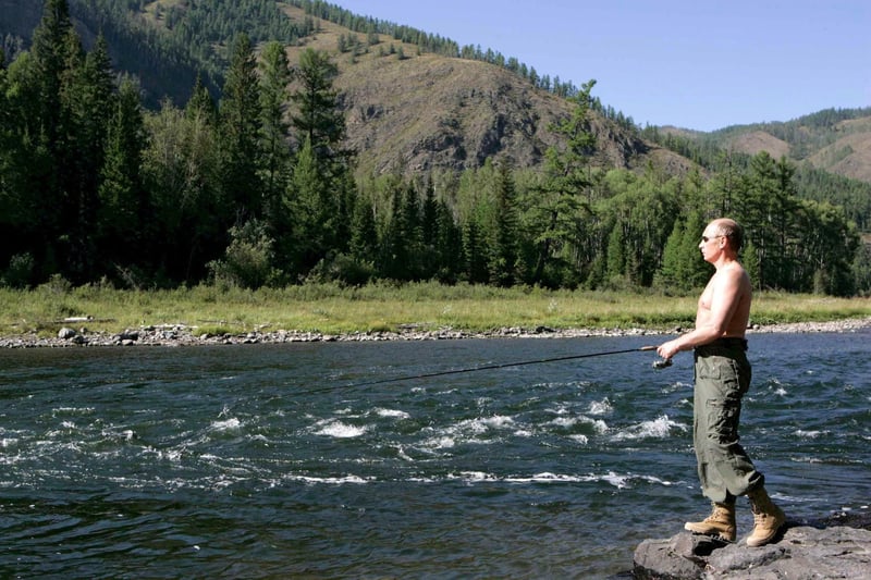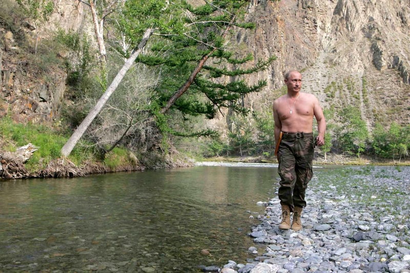Fotos von Putin in diesem Aufzug sind geradezu eine sommerliche Tradition. Der Kreml zeigt den Bürgern regelmäßig, wie der Staatschef als harter Mann durch die Wildnis streift.