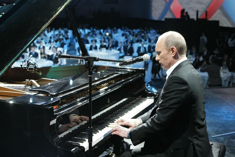 Putin im Januar 2012 zu dem Journalisten Alexej Wenediktow, nach dem er seinem Radiosender Moskauer Echo „Gequassel“ vorgeworfen hatte. Der Tag war wohl ganz gut. Denn hier spielt er auf einem Charity-Konzert für Kinder.