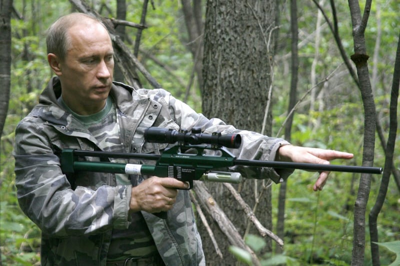 Auch eine Waffe nimmt der Kremlchef zu Hand bei seinen Show-Streifzügen durch die sibirische Wildnis.