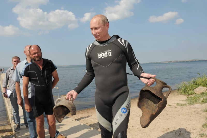 Februar 2008 über seine Zeit als Präsident im Kreml. Peinlich wurde es, als Putin 2011 vor laufenden Kameras vor der Taman-Halbinsel im Süden Russlands im Neoprenanzug in die Ruinen der antiken griechischen Stadt Phanagoria abtauchte, um von dort zwei antike Vasen hochzubringen. Angesichts skeptischer Berichte unabhängiger Medien musste sein Sprecher Monate später einräumen, dass es sich um eine Inszenierung gehandelt hatte. Kritiker hatten Verdacht geschöpft, weil auf den angeblich aus dem sechsten Jahrhundert stammenden Amphoren keine Spuren von Algen oder Muscheln zu sehen waren.