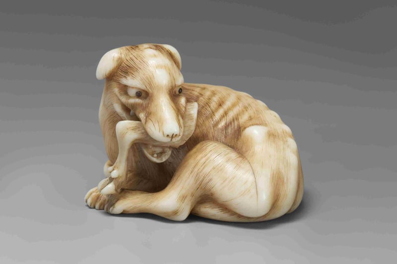 Europäischen Liebhabern japanischer Gürtelanhänger war dieser Elfenbein-Windhund 21.400 Euro wert. Versteigert wurde er von dem Kölner Auktionshaus Lempertz.