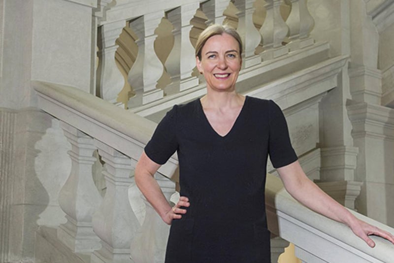 Die Generaldirektorin auf der wiederaufgebauten ‚Englischen Treppe‘ im Residenzschloss von Dresden.