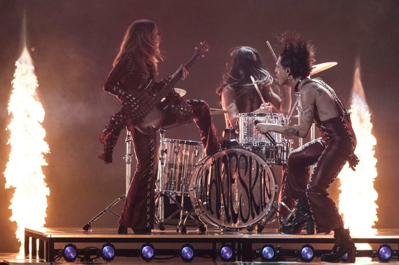 Gewinner des ESC: Måneskin aus Italien performt „Zitti e buoni“ beim großen Finale des Eurovision Song Contest in der Rotterdamer Ahoy-Arena.