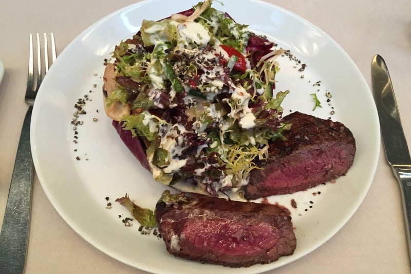 In bester Lage, zwischen Zeil und Römer, unweit von Messe und Bahnhof, überzeugt das „Feinschmecker- und Fischrestaurant Medici“ die Trip Advisor Community. Der Blick auf die Karte zeigt eine vergleichsweise unprätentiöse Küche: Elsäßer Flammkuchen, Vitello Tonnato, Steaks und Bratfisch. Auffällig ist eine Auswahl von spanischem Schinken. Eine kleine, geradlinige Karte die beim Publikum zu gefallen scheint.