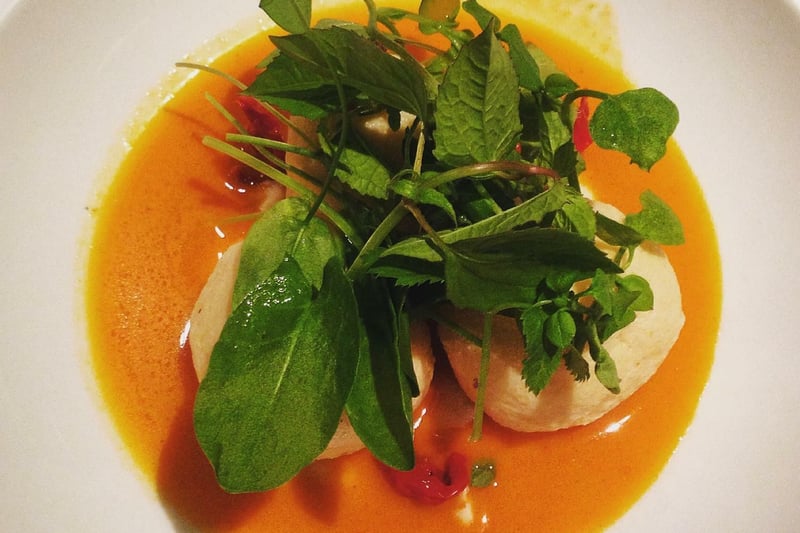 Das Restaurant Tim Rauhe hat eine klare Philosophie: Asiatisch inspirierte Küche ohne Brot, Nudeln und Reis, konsequente Verwendung tierischer Produkte, kein veganes Essen. Die Gäste können wählen von der Auswahl à la Carte bis hin zu einem acht-Gänge-Menü. Serviert werden Kreationen wie Kaviar mit Sprotten und Yuzu, Spanferkel mit Fischbrühe und japanischem Senf, oder die Peking-Ente Interpretation Tim Rauhe, das „Signature Gericht“ des Restaurants.