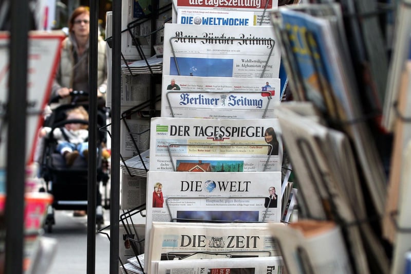 Zeitungen in Verkaufsständern: In Deutschland lassen zwar die Auflagen aller Zeitungen nach, dennoch bekunden viele Deutsche ihr Interesse an Printmedien. In ihrer Freizeit lesen sie weiterhin gerne Zeitschriften und Zeitungen.