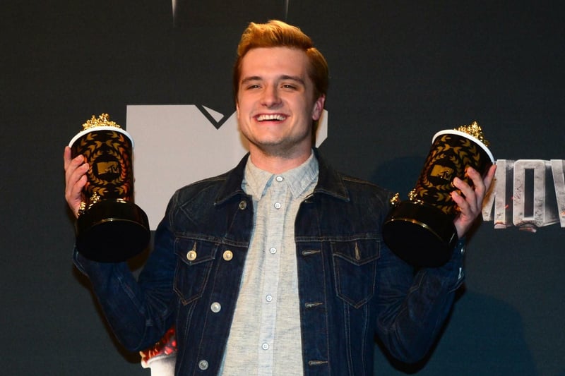 Josh Hutcherson (bester Schauspieler) posiert mit zwei der MTV-Auszeichnungen.