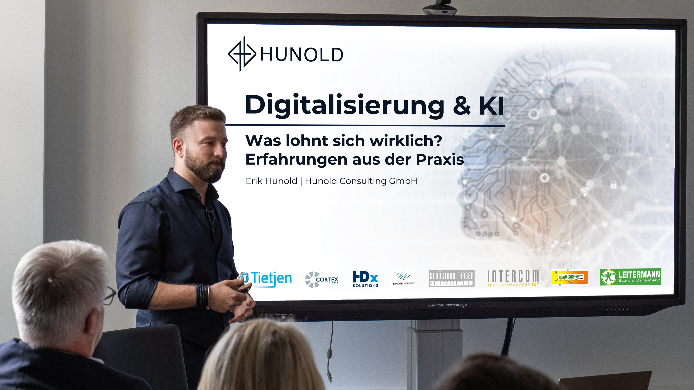 Weil wir in einem Wendepunkt stehen. Viele Unternehmen spüren den Fachkräftemangel, steigende Kosten und wachsenden Konkurrenzdruck. Gleichzeitig haben wir heute Technologien zur Verfügung, mit denen wir 70-90 Prozent interner Aufwände automatisieren können – von Kommunikation bis Angebotswesen. Der Schlüssel ist, diese Tools nicht isoliert zu betrachten, sondern in funktionierende Prozesse einzubetten. Genau das ist unsere Erfahrung bei Hunold Consulting: Nur wer Strukturen, Menschen und Systeme gemeinsam denkt, profitiert wirtschaftlich und nachhaltig.Was ist der Unterschied zwischen Digitalisierung und IT-Umsetzung – und warum passieren so viele Fehlinvestitionen?