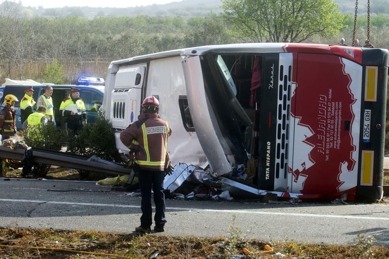 Nach Angaben der Behörden wurden 13 der insgesamt 61 Insassen des Reisebusses getötet. Bei den Toten handele es sich ausschließlich um Studentinnen aus dem Ausland, teilte Spaniens Innenminister Jorge Fernández Díaz mit. Mehr als 40 Fahrgäste wurden verletzt. Ein - namentlich nicht genannter - Deutscher sagte der Zeitung „El Mundo“ zufolge: „Das sind meine Freunde. Vielleicht hätte ich etwas für sie tun können.“ Er musste zur Behandlung seiner Gesichtsverletzungen in ein Krankenhaus nach Barcelona gebracht werden.