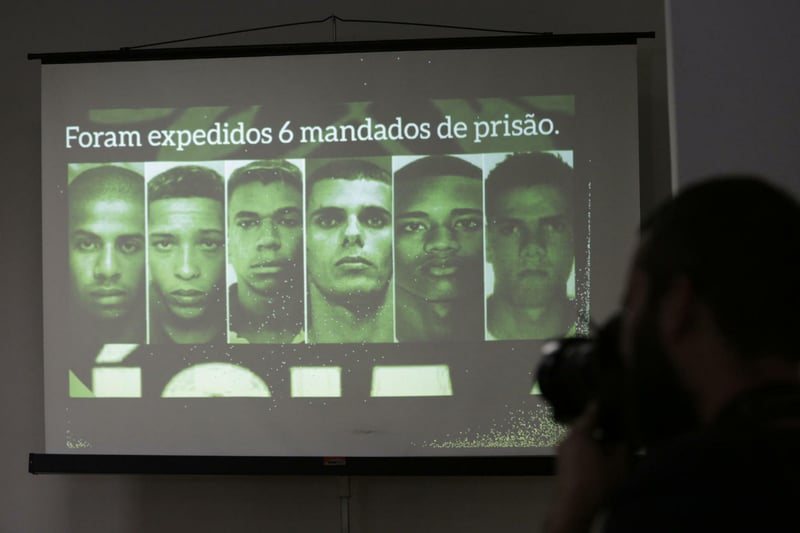 Die Fotos von Verdächtigen einer Massenvergewaltigung werden auf einer Pressekonferenz der Polizei in Rio gezeigt. Die Vergewaltigung einer 16-Jährigen und die Verbreitung von Videos der Tat hatten weltweit für Entsetzen gesorgt.