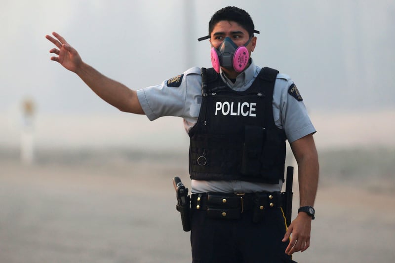 An den Kreuzungen postierten sich Polizisten, um zu verhindern, dass die Einwohner von der vorgegebenen Route abweichen, um Habseligkeiten aus ihren Häusern zu retten. Über der Stadt kreisten drei Armeehubschrauber, um Alarm zu schlagen, falls die Flammen dem Highway 63 zu nahe kommen sollten.