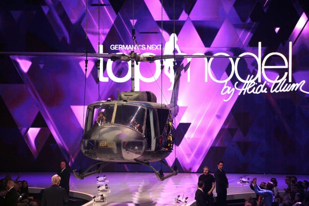 Die Heidi-Klum-Show flimmert ab dem 12. Februar zum zehnten Mal über den Bildschirm: Germany's next Topmodel. Dies ist ein Bild aus dem Jahr 2013, als ein Hubschrauber auf der Bühne in der SAP-Arena in Mannheim landete.