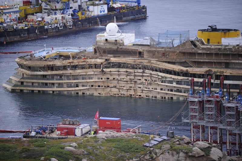 Der zerstörte Teil der „Costa Concordia“: Das Kreuzfahrtschiff war im Januar 2012 zu nah an die Mittelmeer-Insel Giglio herangefahren, hatte einen Felsen gerammt und war teilweise gekentert.