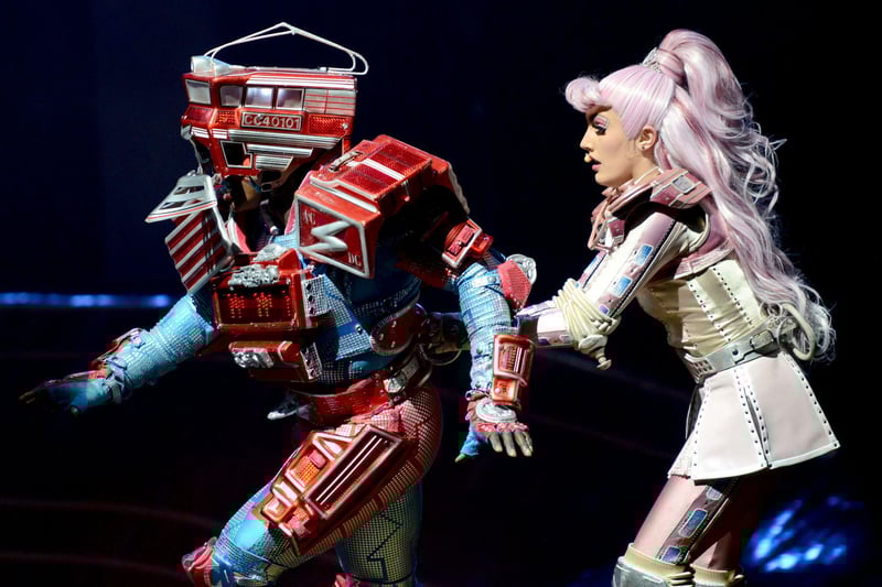 Georgina Hagen (rechts) als Erste-Klasse-Wagen Pearl und Mykal Rand als E-Lok Elektra treten in Bochum im Musical „Starlight Express“ auf.