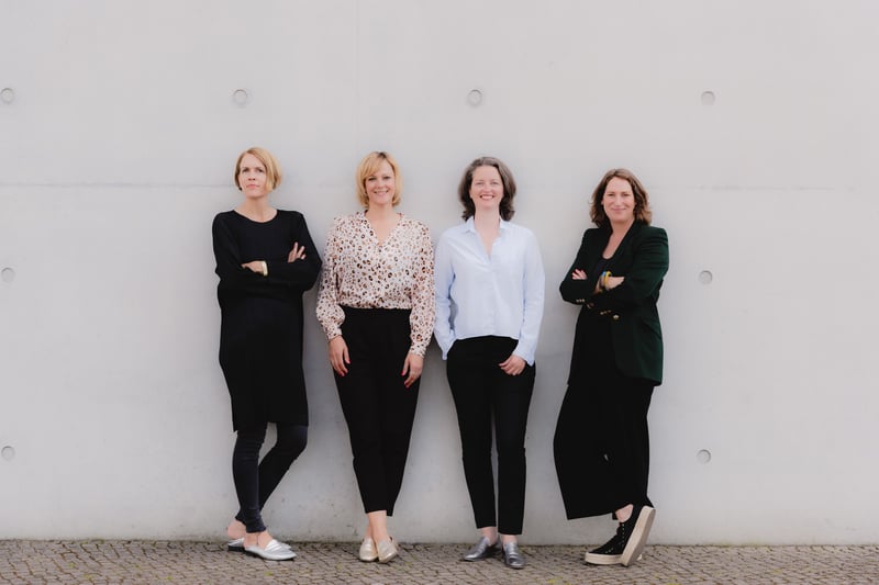 Die Initiatorinnen des Art + Tech Reports (von links): Die Geschäftsführerin der Berliner Kunstinstitution LAS Art Foundation, Kristina Leipold, die Strategieberaterin Kerstin Gold und die Galeristinnen Anne Schwanz und Johanna Neuschaeffer.