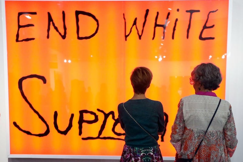 Besucher der Art Miami Beach begutachten das Werk von Sam Durant.