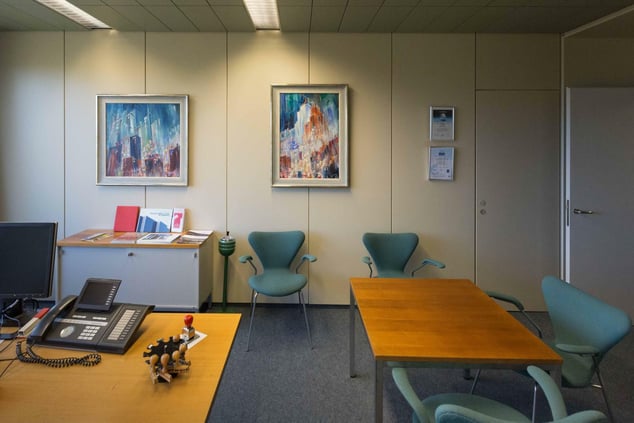 Bei Vattenfall schmücken die farbstarken Bilder von Konrad Zuse ein Büro.