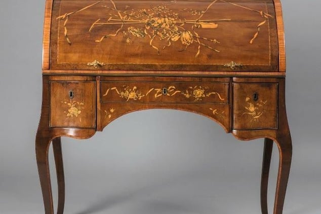 Das in den 1770er-Jahren mit Blumenmarketerie geschmückte Zylinderbureau überrundete mit 118.750 Euro deutlich seine Schätzung.