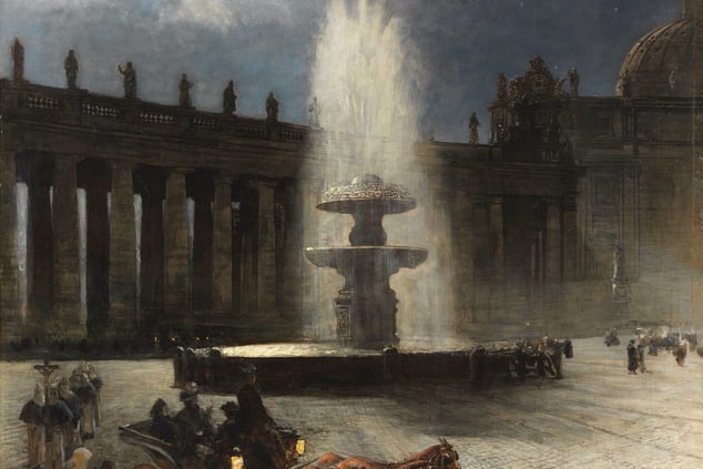 Oswald Achenbach beherrschte die Lichtführung brillant wie dieses 1880 entstandene Gemälde "Der Petersplatz bei Vollmond" (78 x 100 cm) eindrucksvoll beweist. Geschätzt ist es auf 40.000 bis 50.000 Euro. Foto: Ketterer Kunst