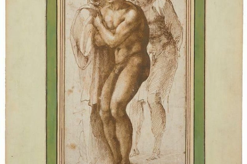 Das relativ große Blatt ist die erste Aktzeichnung des jungen Michelangelo (1475–1564), eine Studie nach Masaccio. Der ehemalige Christie’s-Spezialist Furio Rinaldi schrieb die bisher als Werk Pietro Facchinis eingestufte Zeichnung Michelangelo zu, bestätigt vom Cambridge-Emeritus Paul Joannides.