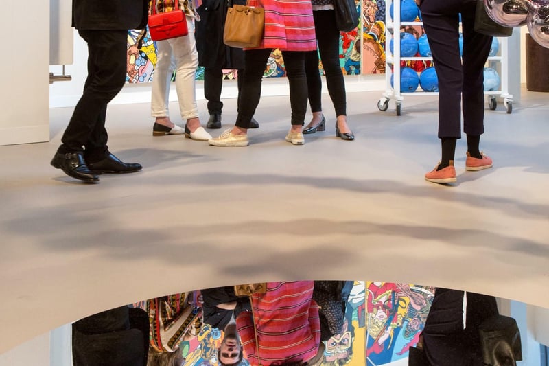Austausch auf der Art Basel bei der Galerie Perrotin.