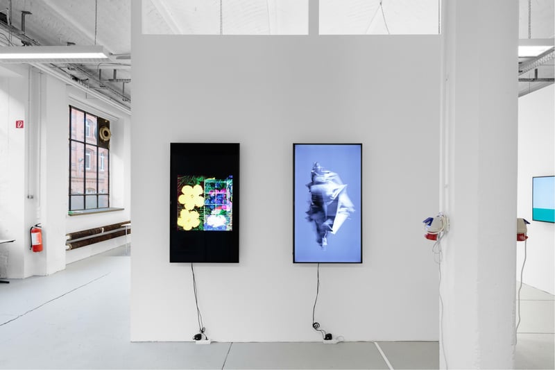 Die Ausstellung versammelte neun internationale Künstler, die algorithmische oder generative Systeme als ihre künstlerische Sprache verwenden. Ihre Werkzeuge sind digitale Codes und Automatismen. Abgebildet von li.: „ //OG Flowers//„ von Cornelia Sollfrank und „New sculpt“ von 2013 von LaTurbo Avedon.