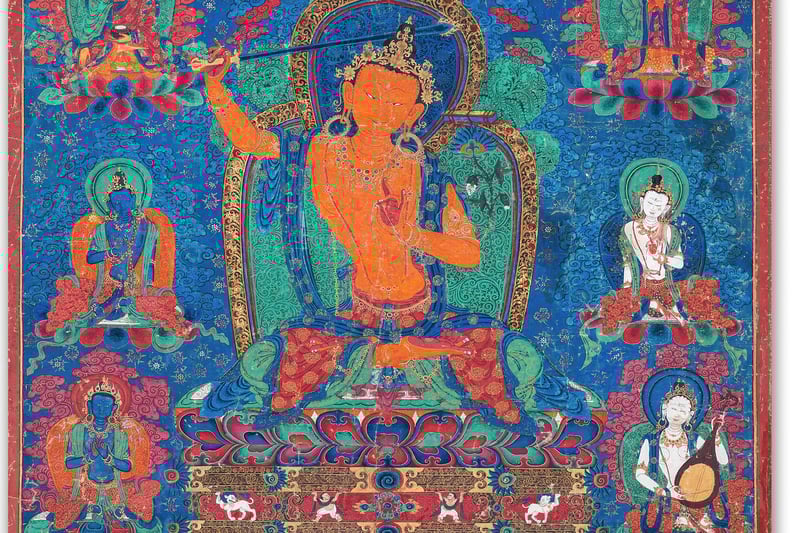 Mit 492.000 Euro (inkl. Aufgeld) wurde das Gebetsbild von circa 1425/1450 teuerstes Los bei Nagel. Die Darstellung mit dem Bodhisattva der Weisheit erhielt ein amerikanisches Museum.