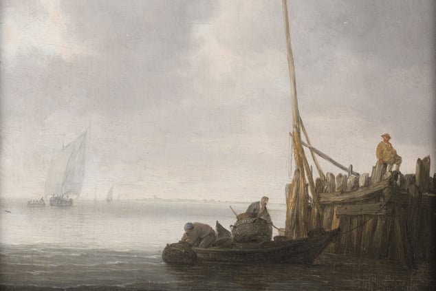 Den Dunst der Atmosphäre in Stimmung zu verwandeln, war die große Herausforderung für die Niederländer des 17. Jahrhunderts. Simon de Vliegers „Anlegestelle mit Booten und Fischern“ soll mindestens 25.000 Euro einspielen.