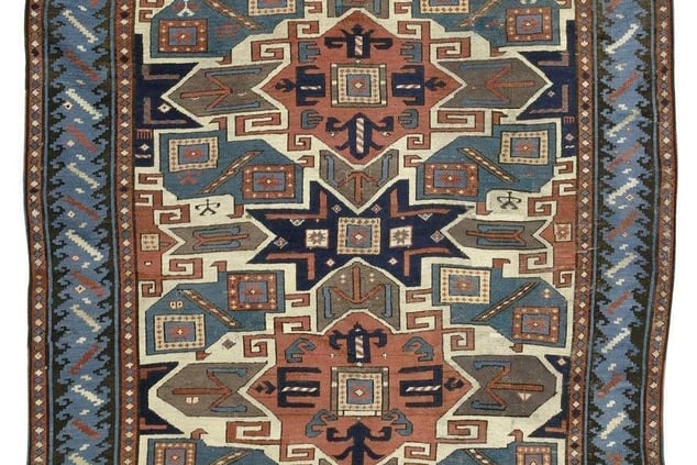 Ein Stern-Kasak (176 x 164 cm) aus der Sammlung Gert K. Nagel. Die Textilie aus dem Kaukasus (um 1800) ist auf 15.000 Euro geschätzt. Quelle: Nagel