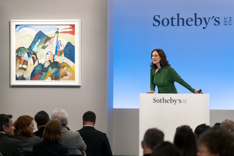 London. Wassily Kandinskys Meisterwerk „Murnau mit Kirche II“ von 1910 avancierte zum erwarteten Star-Los der Frühjahrsauktionen in London. Es wurde in der Abendauktion für Moderne und zeitgenössische Kunst bei Sotheby’s für einen Rekordpreis für den Blaue-Reiter-Künstler an einen Kunden des Auktionators Oliver Barker verkauft.