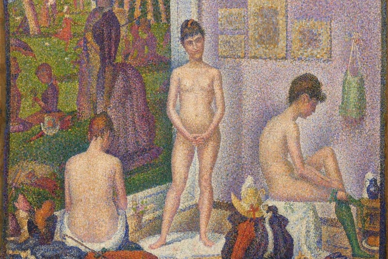 Das pointillistische Ölgemälde „Les Poseuses, Ensemble (Petite version)“ wurde von Christie's mit 100 Millionen Dollar bewertet (Ausschnitt).