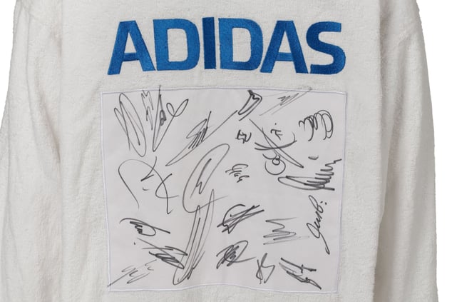 In Sotheby’s Online-Auktion soll ein von Fußballern des FC Bayern signierter weißer Bademantel in Größe Large mindestens 100 bis 200 Euro einspielen. Es gehört wenig Wissen um die Parameter des Marktes dazu, um vorherzusagen, dass es für die Memorabilien eines Prominenten dabei nicht bleiben dürfte.