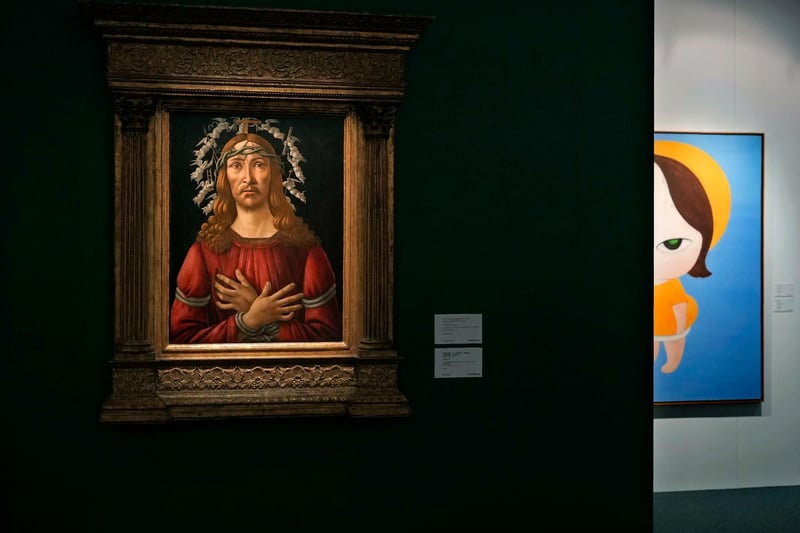 Das Frühwerk des Renaissancemalers "Man of Sorrows" (vorne) krönt das Angebot der "Masters Week" im Januar. Rechts im Hintergrund hängt eines der Toplose der für November anberaumten, neuen Abendauktion für jüngste Kunst, das Gemälde "Nice To Meet You" des japanischen Künstlers Yoshitomo Nara.
