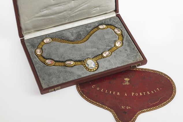 Highlight bei Neumeister war ein historisch bedeutsames Schmuckstück. Ein Collier aus dem Besitz der bayerischen Prinzessin Auguste Amalie aus der ersten Hälfte des 19. Jahrhunderts. Es vereint eine Gemme mit dem Porträt des bayerischen Königs Max I. Joseph sowie Porträtminiaturen der sieben Kinder der Prinzessin. Sie war mit Eugène Beauharnais, dem Stiefsohn Napoleons, verheiratet. Das erklärt, warum das Erfolgsgebot in Höhe von 156.000 Euro aus Frankreich kam.