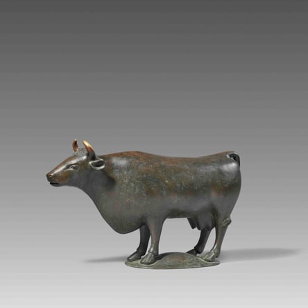 Aus dem traditionell gut bestückten Angebot an Skulpturen der Moderne ging am Folgetag zwar wiederholt etwas zurück. Zahlreiche besondere Stücke von Fritz Klimsch und René Sintenis überrundeten aber locker ihre Schätzwerte oder erzielten ein Vielfaches, wie das Ziegenpaar von Emy Roeder. Ewald Matarés „Tänzelndes Pferd“ ging zum Auktionsweltrekord von 94.500 Euro an einen südwestdeutschen Privatbieter. Den Vogel hatte tags zuvor Matarés 80 Kilogramm schwere, stehende Kuh abgeschossen. Aus Chile eingeflogen, warteten auf sie schon zahlreiche Vorgebote bis 160.000 Euro. Der Hammer fiel bei 280.000 Euro, fast zum Doppelten der oberen Taxe, zugunsten eines ostdeutschen Bieters, der mit Aufgeld 352.800 Euro bezahlen muss. Denselben Preis realisierte eine reizvolle, erotisch verklausulierte, späte Picasso-Zeichnung, die mit 200.000 Euro ins Rennen gegangen war. Teuerstes Los wurde jedoch ein bescheiden mit 120.000 Euro aufgerufener Altmeister. Erst nach langem Hin und Her bekam ein New Yorker Bieter den Zuschlag für Josef von Bredaels „Turmbau zu Babel“, der letztlich 403.200 Euro einspielte.