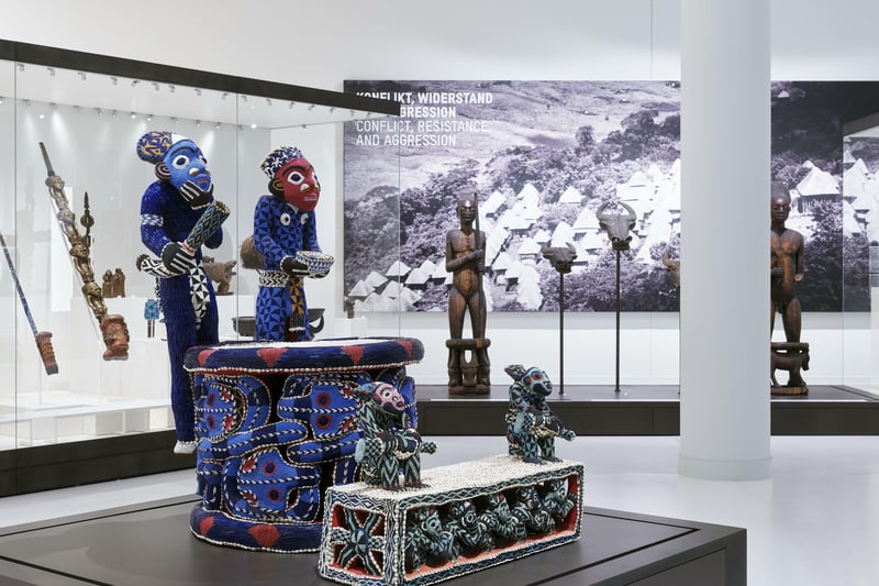 Der Ausstellungsführer zu den Schausammlungen beider Museen verschweigt nicht, dass viele Objekte vor allem des Ethnologischen Museums nicht nur durch Kauf, Tausch und Schenkung, sondern auch durch militärische Gewalt und wirtschaftlichen Druck erworben wurden. Das gilt vor allem für die Objekte aus Ozeanien, die Kultobjekte und Bauten wie das mit Schnitzerei und Malerei reich dekorierte Versammlungshaus aus Palau repräsentieren.