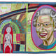 Wenn man aber näher kommt, sieht man eine irrwitzige Collage widersprüchlicher Botschaften und drastischer, nicht gepixelter Fotos von Kriegs- und Folteropfern mit grausamen Details. Wie eine Pinnwand sind die Holzplatten zudem mit Symbolen und Aufklebern übersäht, mit Presseschlagzeilen, Fake News und zweifelhaften Kommentaren.