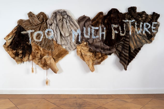 Bis hin zur titelgebenden Arbeit „Too much future“ der jungen Absolventin der Düsseldorfer Akademie Rebekka Benzenberg. Deren konsumkritische Collage aus alten Pelzmänteln steht am Ende der Ausstellung. Der Titel greift einen Slogan der Punkszene der DDR auf, die damit gegen das Regime protestierte.