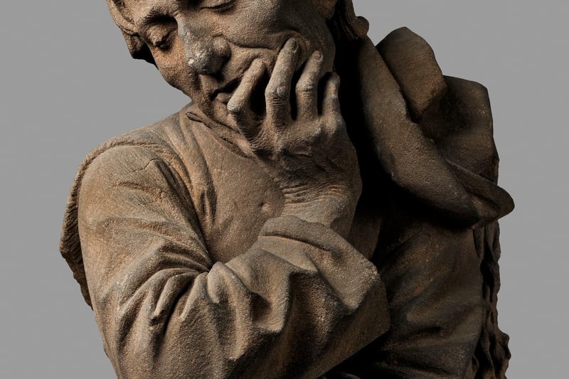 Textilien, Haut und Haar sind differenziert. Entstanden ist die halbfigurige Skulptur in Straßburg vor 1467.