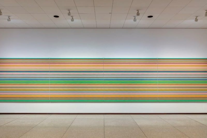 Blick auf das riesige vierteilige Streifenbild „Strip”, 2013/2016, in der Ausstellung „Gerhard Richter. 100 Werke für Berlin“.