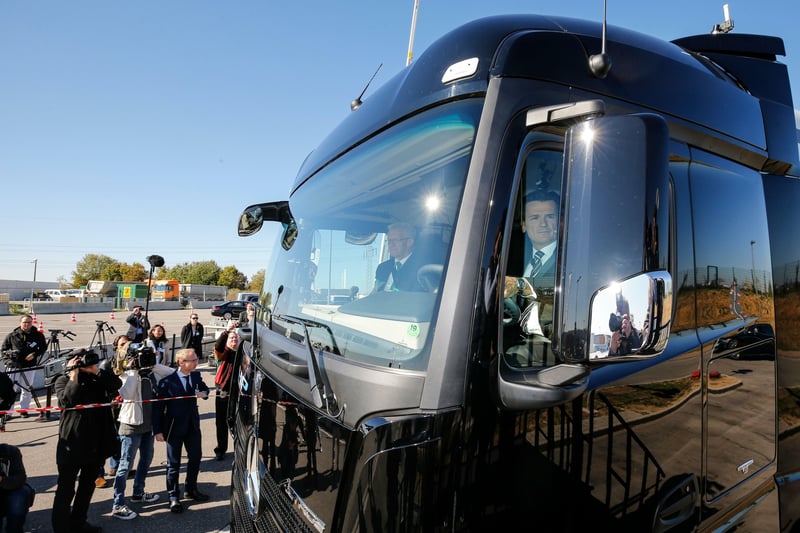 Weltpremiere auf der A8 bei Stuttgart: Der Autobauer Daimler startet einen Test mit dem ersten autonom gesteuerten Lkw in Deutschland. Der 40-Tonner fährt mit bis zu 80 km/h – ganz so wie ein Flugzeug auf Autopilot. Am Steuer sitzt damals – um notfalls einzugreifen – Truck-Chef Bernhard selbst, sein Beifahrer ist Baden-Württembergs Ministerpräsident Winfried Kretschmann (Bündnis 90/Die Grünen).