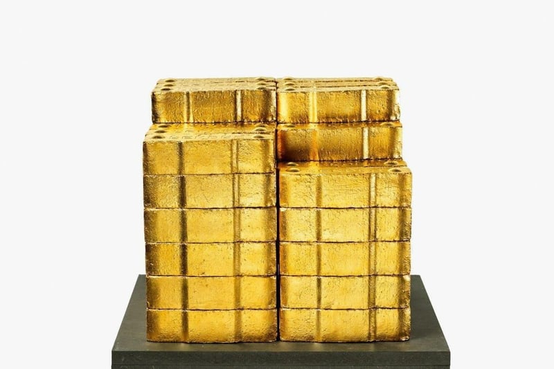 Die Skulptur "Kohle", entstanden 2006 aus 76 in Bronze gegossenen und 24 Karat vergoldeten Kohlebriketts kam auf ein Ergebnis von 59.500 Euro.