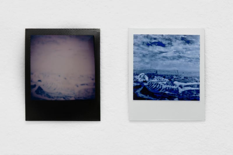 Die Motive auf Aaron Scheers Polaroids werden von einer KI erstellt und mit Bildern aus dem eigenen Fundus kombiniert. Abgebildet sind die Arbeiten Nr. 8 und 9 aus der 70-teiligen Serie „By the Sea“.