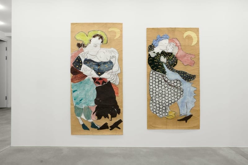 Blick in die Ausstellung „Tendernesses“ mit großen figurativen Collagen