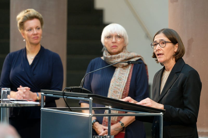 Es spricht Susanne Gaensheimer, Direktorin der Kunstsammlung NRW und Mitglied der Gründungskommission für das Deutsche Fotoinstitut. Zu ihrer Linken Staatskulturministerin Claudia Roth (Bündnis 90/Die Grünen) und ganz links Ina Brandes, Ministerin für Kultur und Wissenschaft des Landes Nordrhein-Westfalen (CDU)