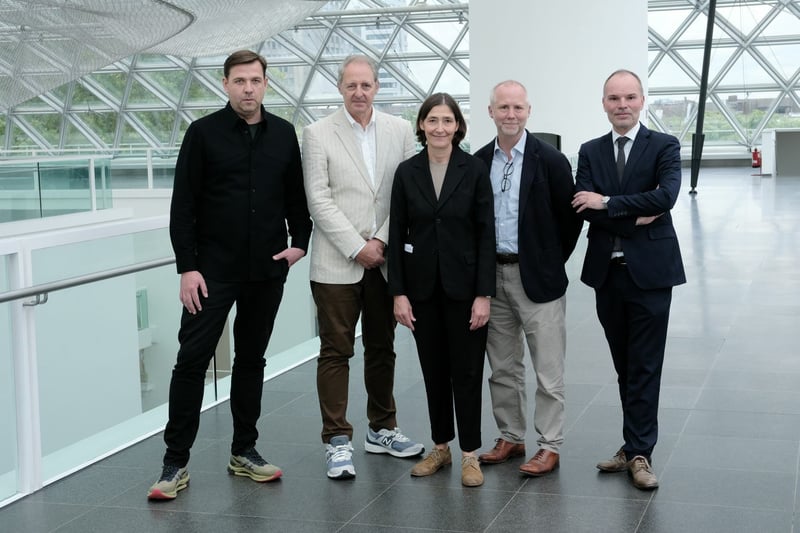 Von li.: Moritz Wegwerth, Fotograf und Vorsitzender des Vereins zur Gründung und Förderung eines Deutschen Fotoinstituts e.V., Christian Scheidemann, Restaurator New York, Susanne Gaensheimer, Direktorin der Kunstsammlung Nordrhein-Westfalen, Düsseldorf, Felix Krämer, Direktor des Kunstpalasts, Düsseldorf, und Peter Gorschlüter, Direktor des Museum Folkwang, Essen