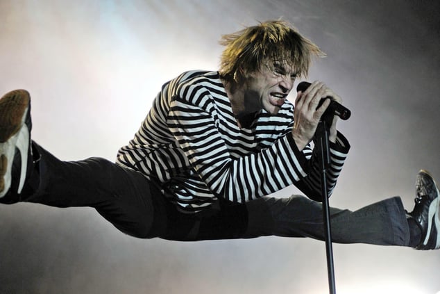 Wie ein Derwisch fegt Campino über die Bühne. Sein Spagatsprung erreicht noch immer formidable Höhen. Beim Bad in der Menge wirft der Frontmann der Toten Hosen seinen athletischen, pitschnassen Körper in die ausgestreckten Arme der aufgewühlten Fans, die ihn durch das schweiß- und bierschwadengetränkte Hallenrund wuchten.