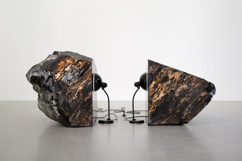 Kamel Mennour stellt die Künstlerin Alicja Kwade aus, die Alltagsgegenstände mit Stein, Holz, Metall und anderen Materialien zusammenbringt. Die Ausstellung „Blue Days Dust“, die noch bis 5. November in der Rue Saint-André-des-Arts zu sehen ist, kreist um Themen wie Vergänglichkeit und Tod. Kwade verbildlicht sie mit Arrangements von Alltagsgegenständen: einer Uhr, einer Sanduhr und einem großen Wasserbecken, dessen Tropfen in regelmäßigen Abständen fallen und an die vergehenden Sekunden und Minuten erinnern.